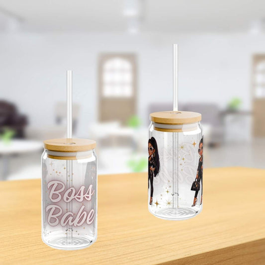 Boss Babe 16oz Sipper Glass — Clear Tumbler with Straw