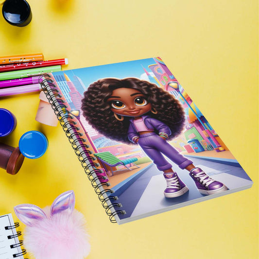 Spiral Notebook — Cute Curly-Haired Girl Illustration, Ruled Journal